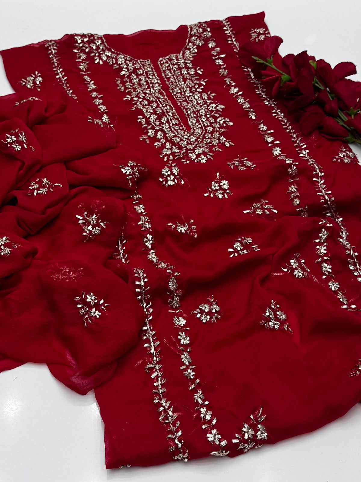Bamber Chiffon Gota Work Shirt Dupatta 2Pcs Dress