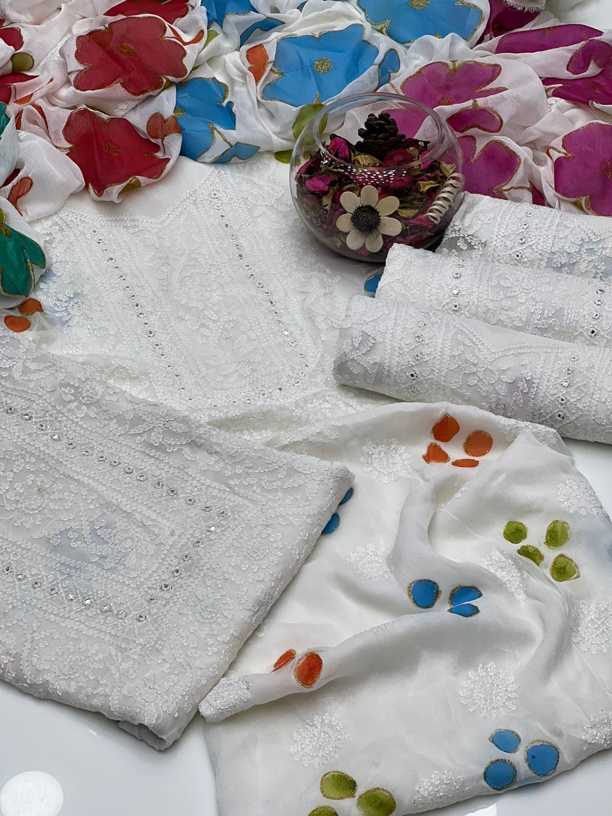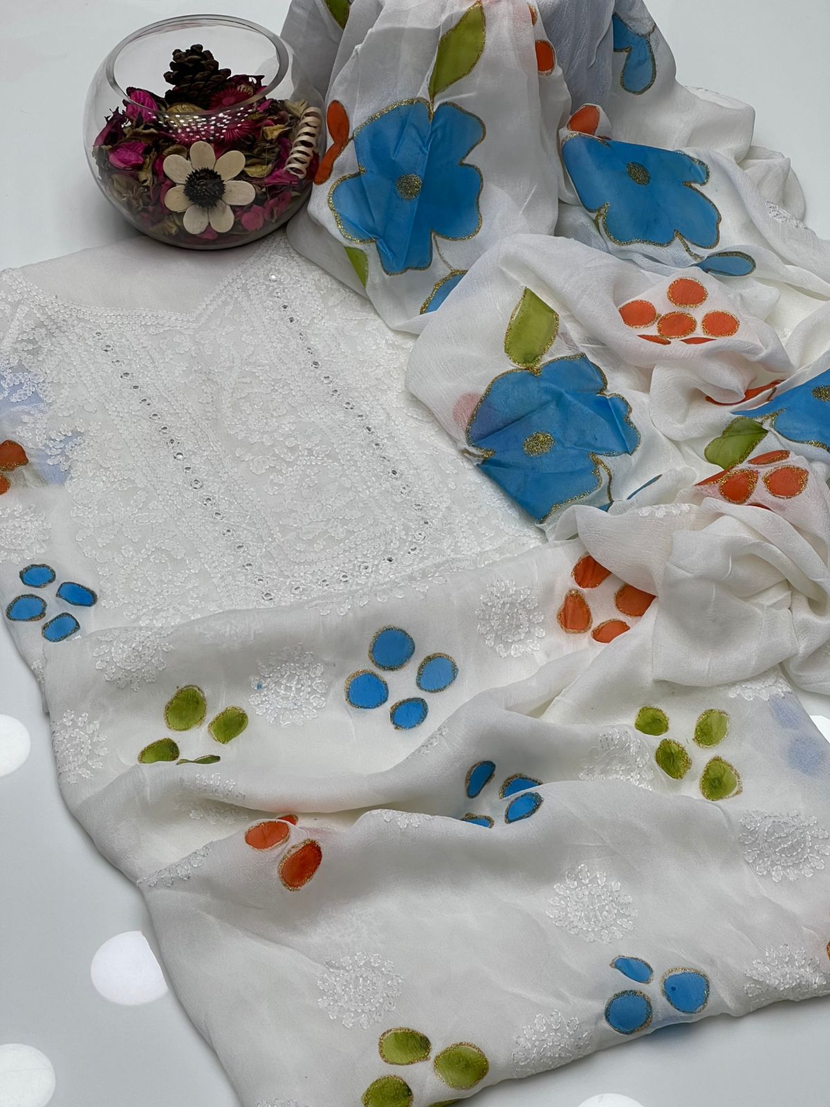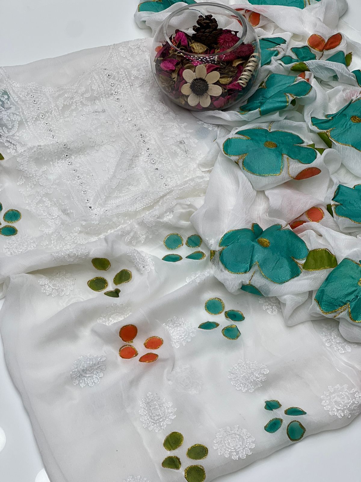 Chiffon shadow sheesha gala work with oil paint bunches with chiffon shadow embroidery with oil paint duptta