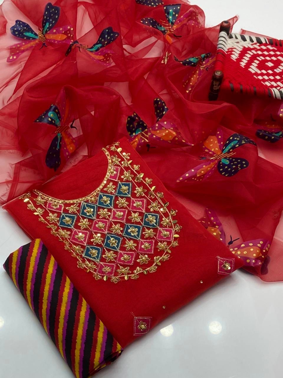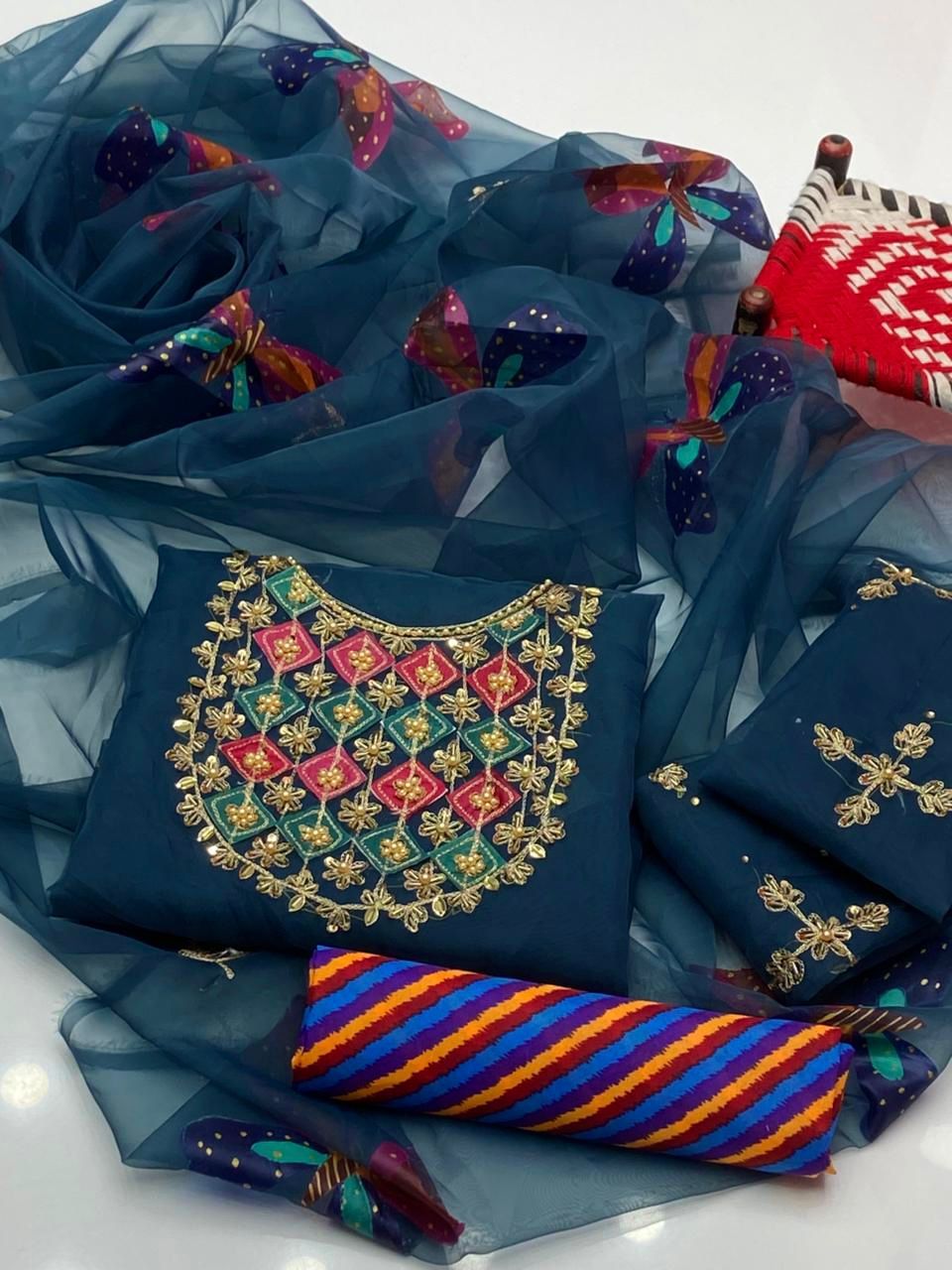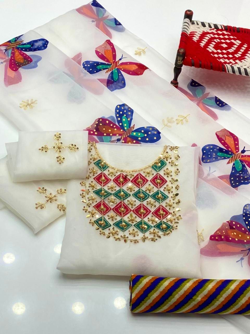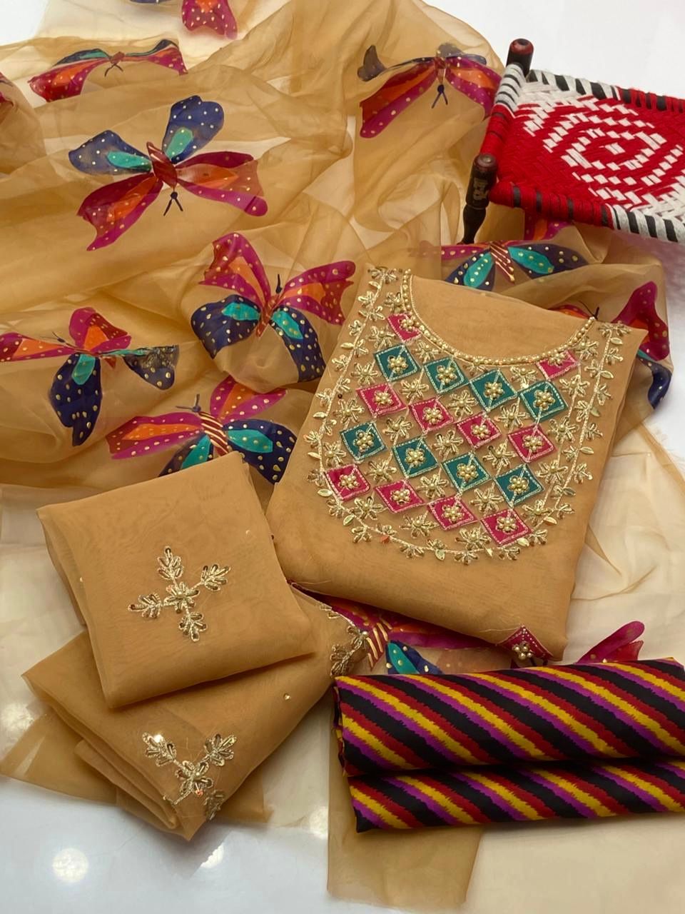 One of the beautiful & Stunning handwork Stones And beads work organza shirt