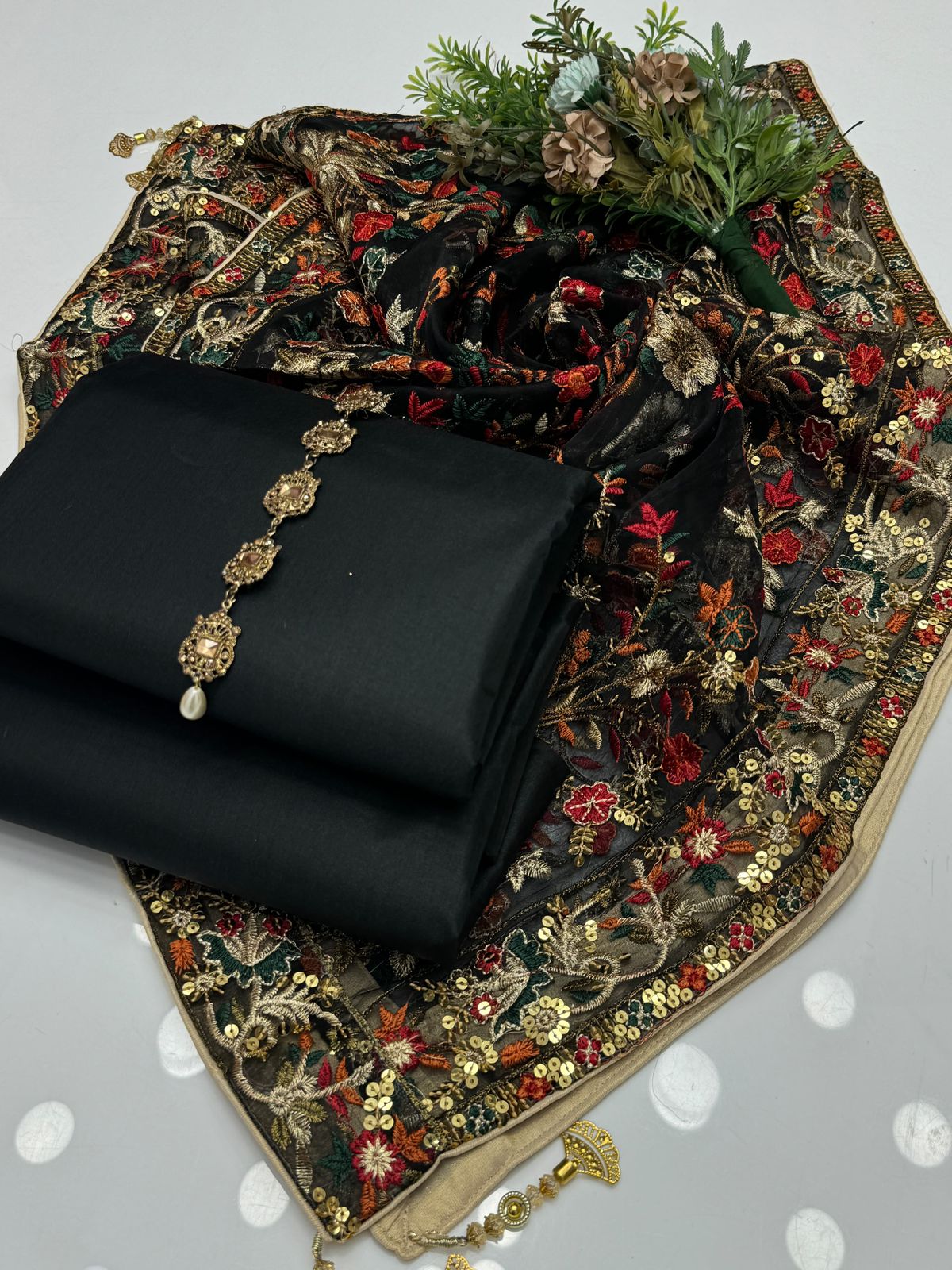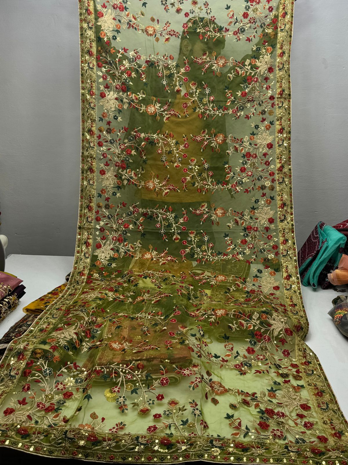 Duppata Matching Organza HEAVY Indian Embroidered + Sequence Work Along with 4 Sided Wide Piping Borders