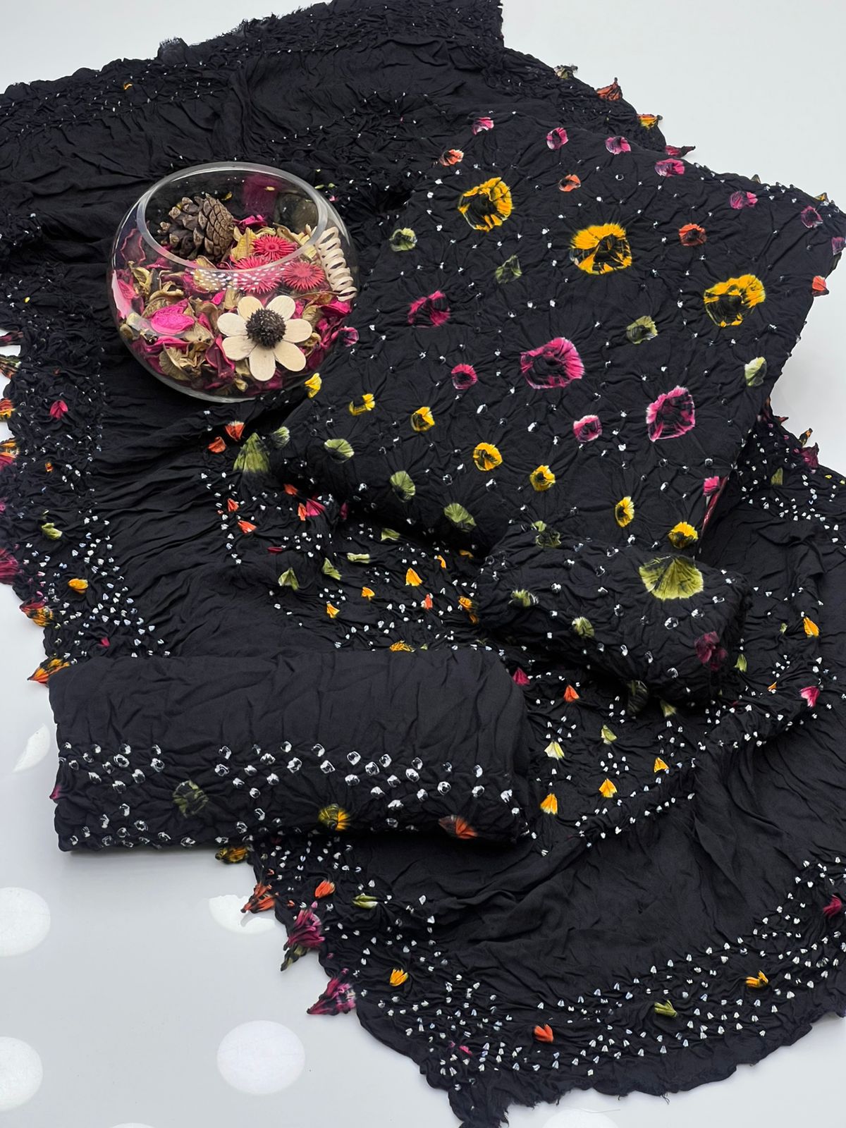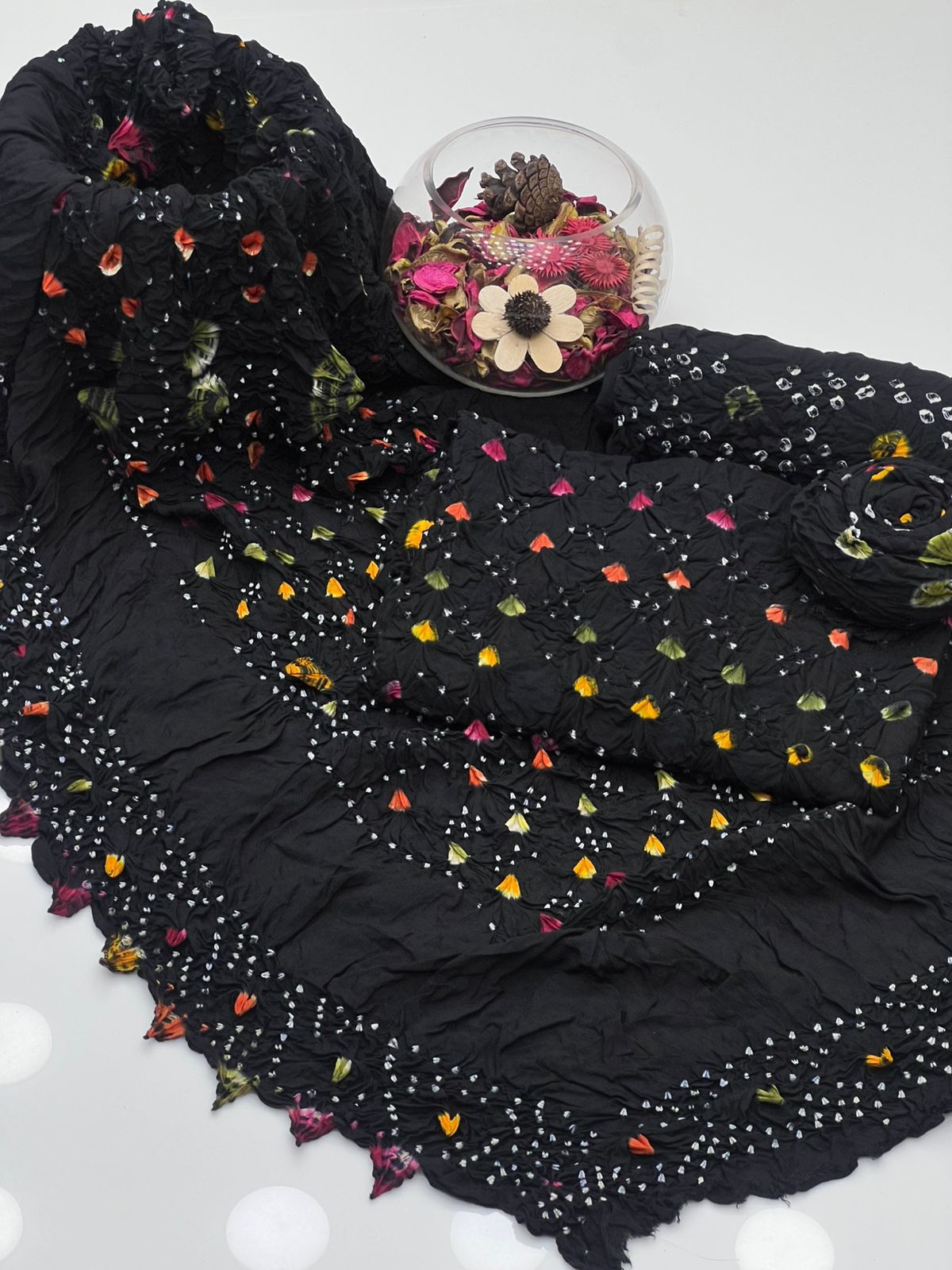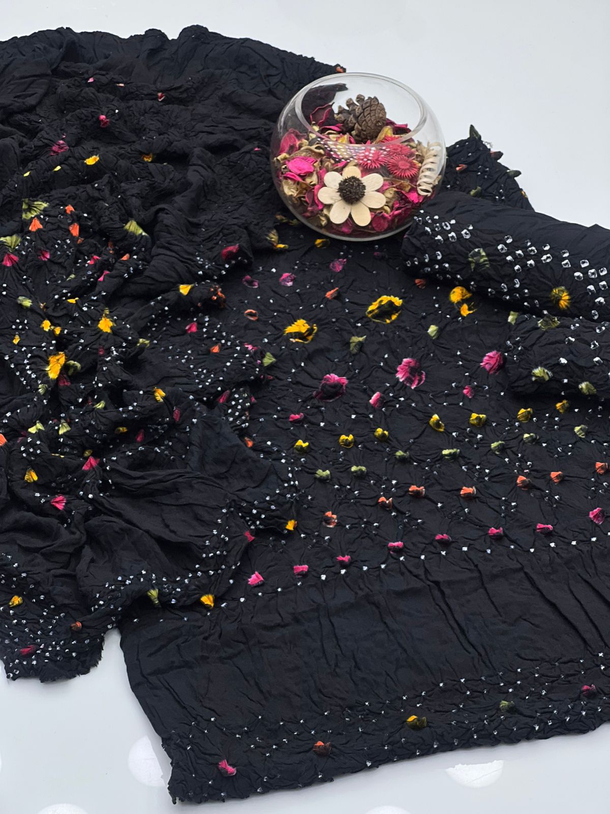 Linen Rajhistani Handmade Chunnri All Over Chunnat Shirt, Sleeves , Trouser & Dupatta 4 Pcs Dress