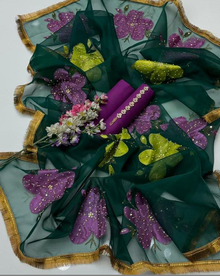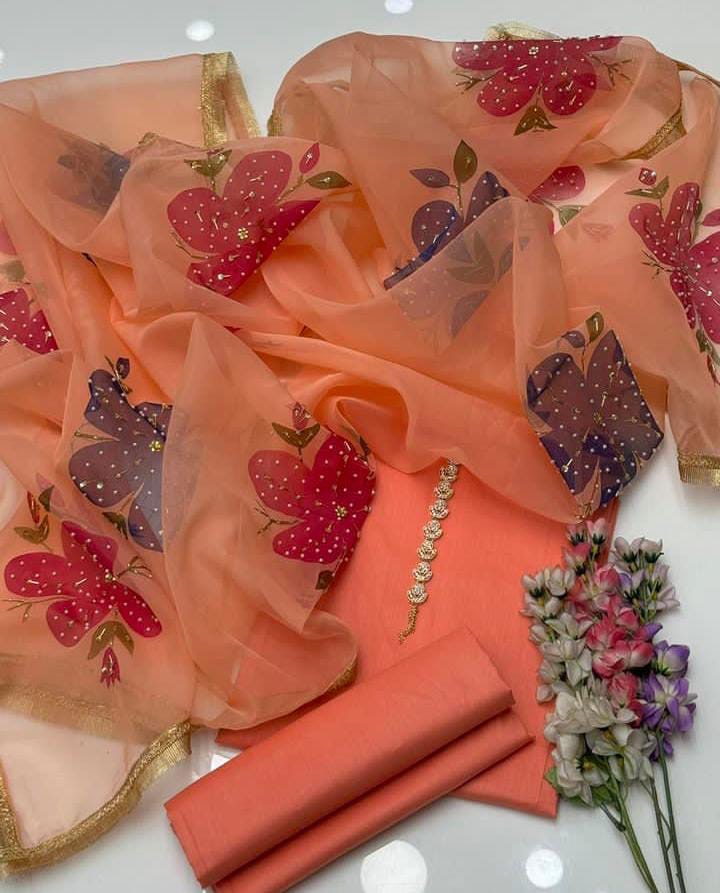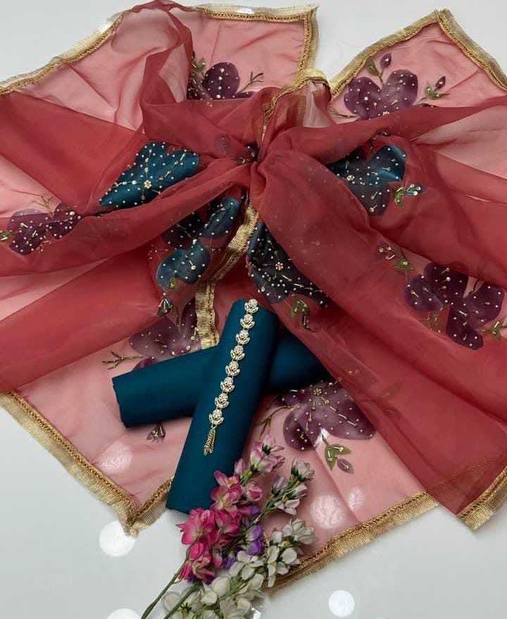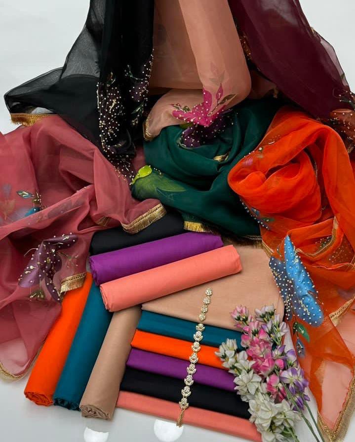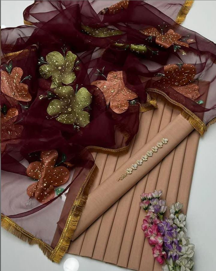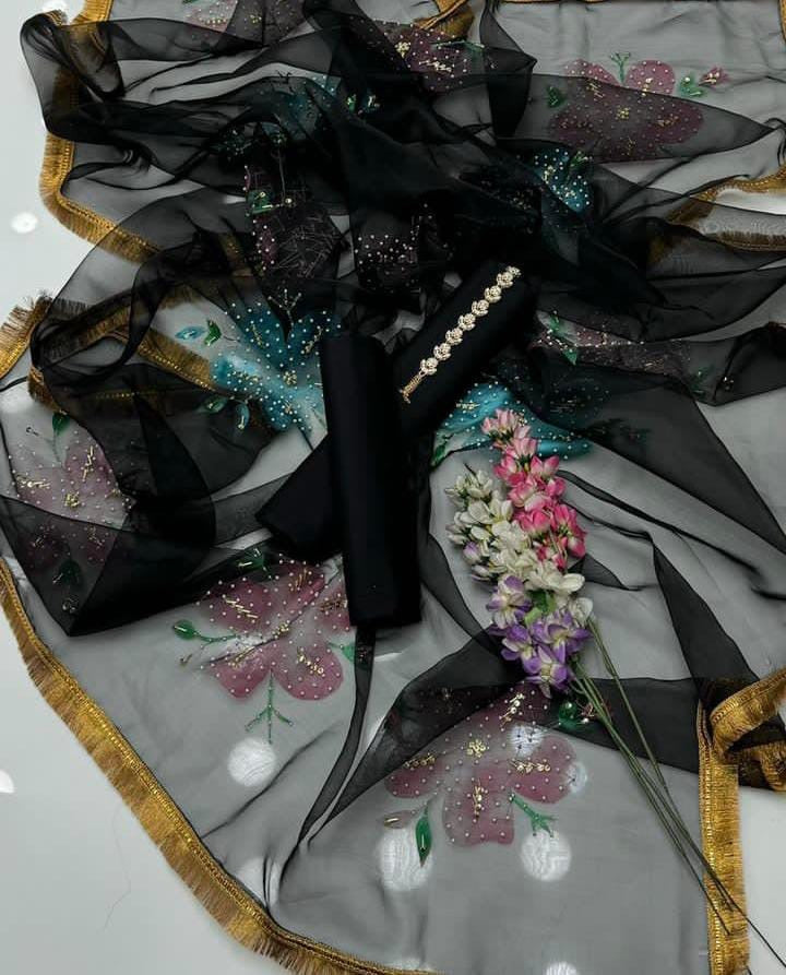 Organza Brush Paint Heavy Beads Work 3PC Dress