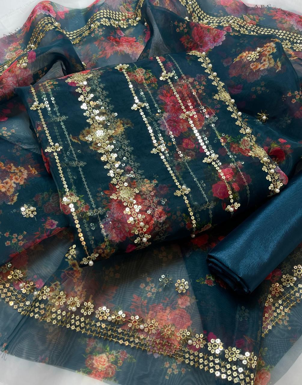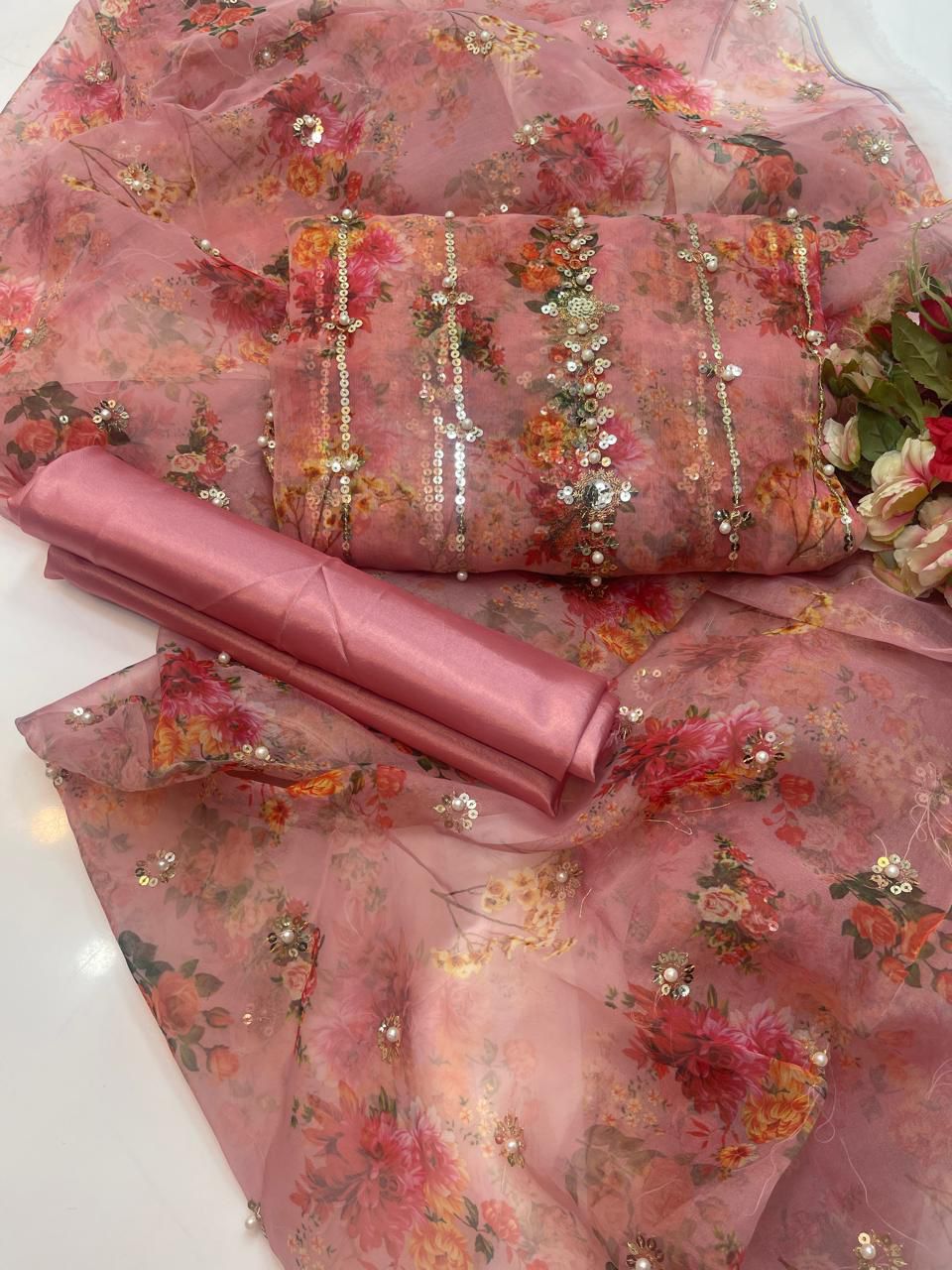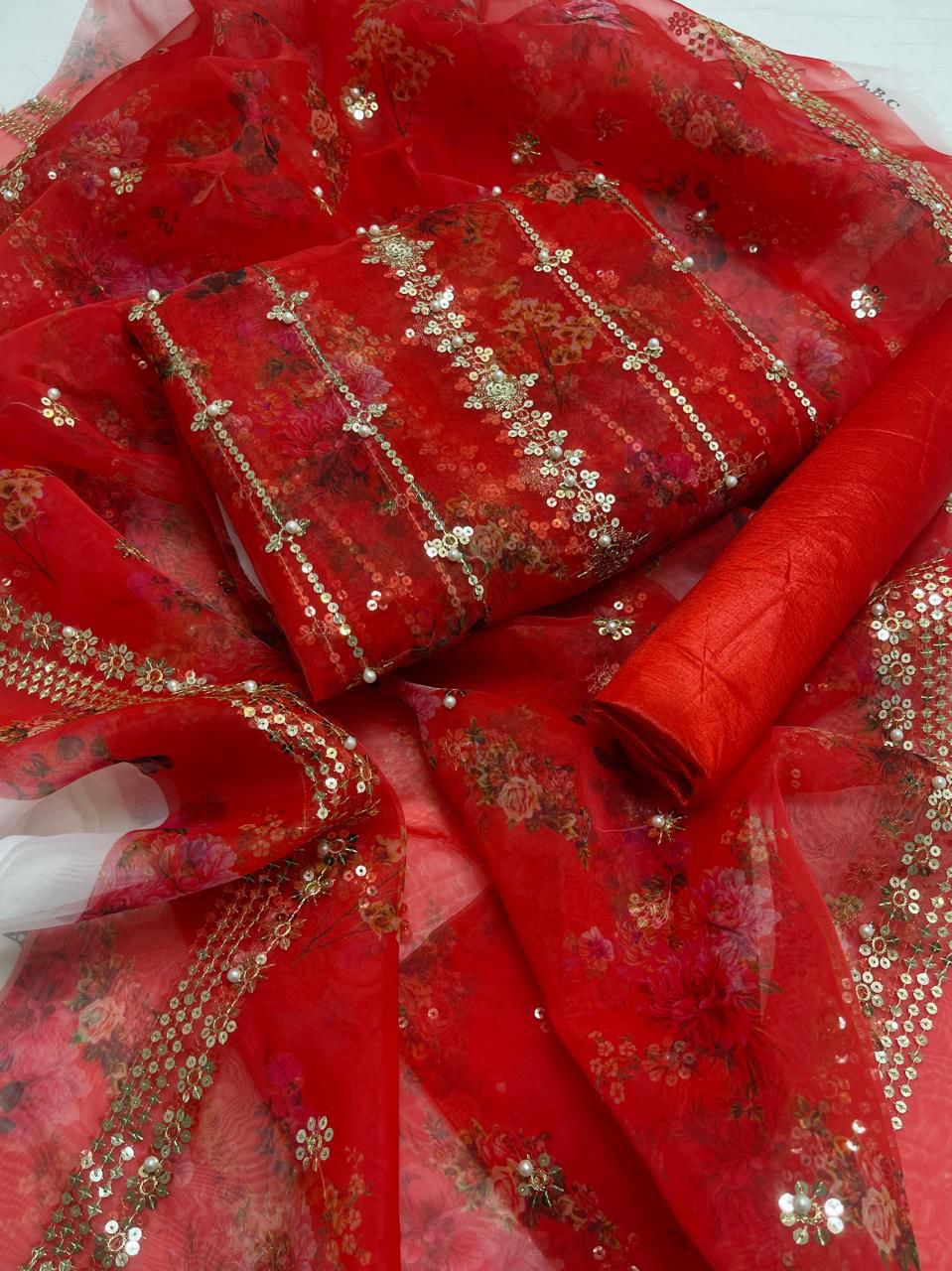 Organza digital embroidered & pearls front back same