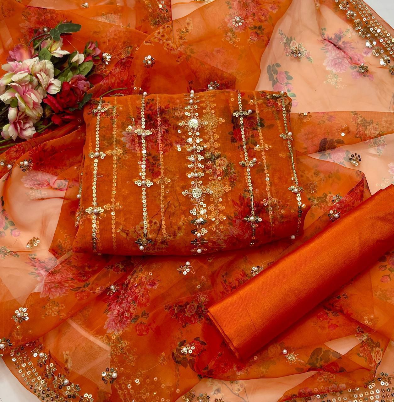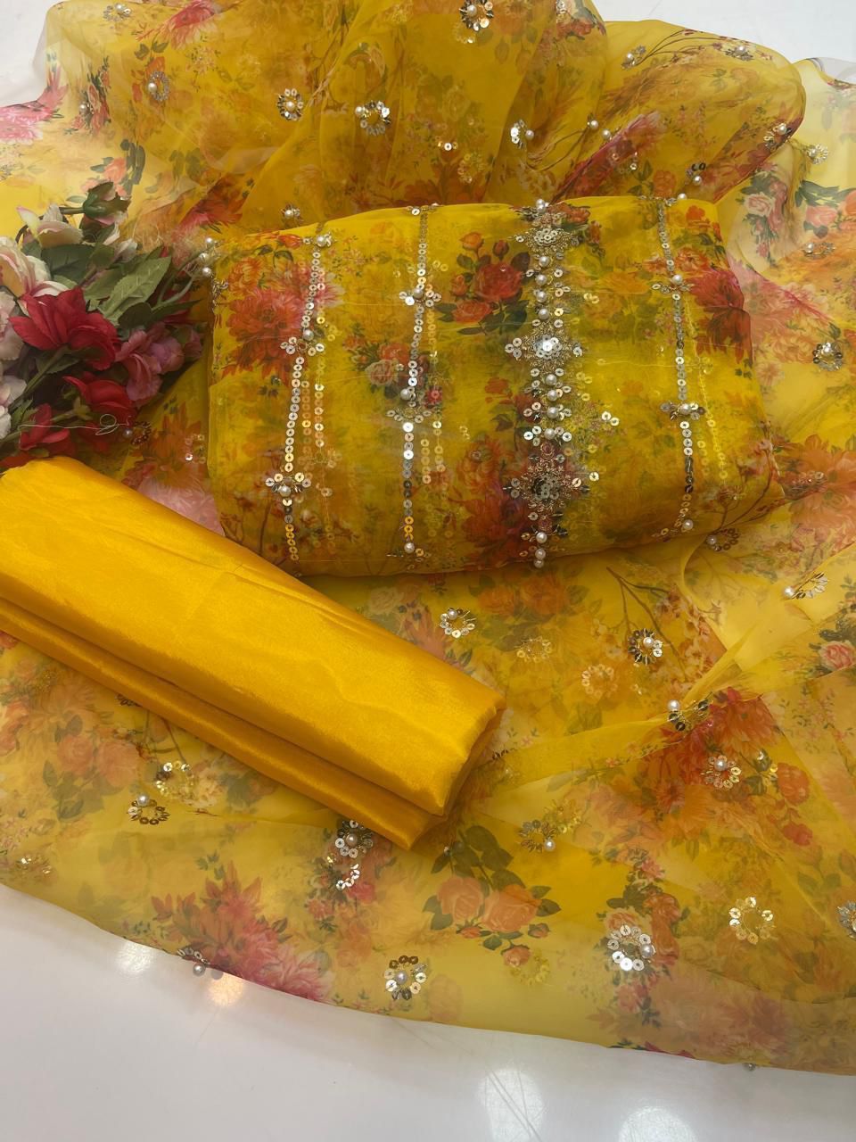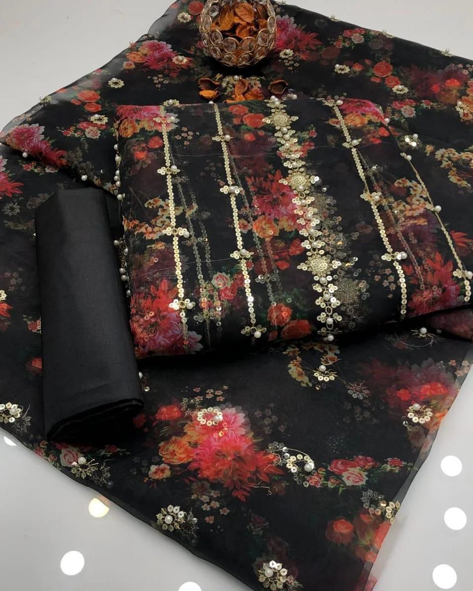 Organza digital embroidered & pearls front back same