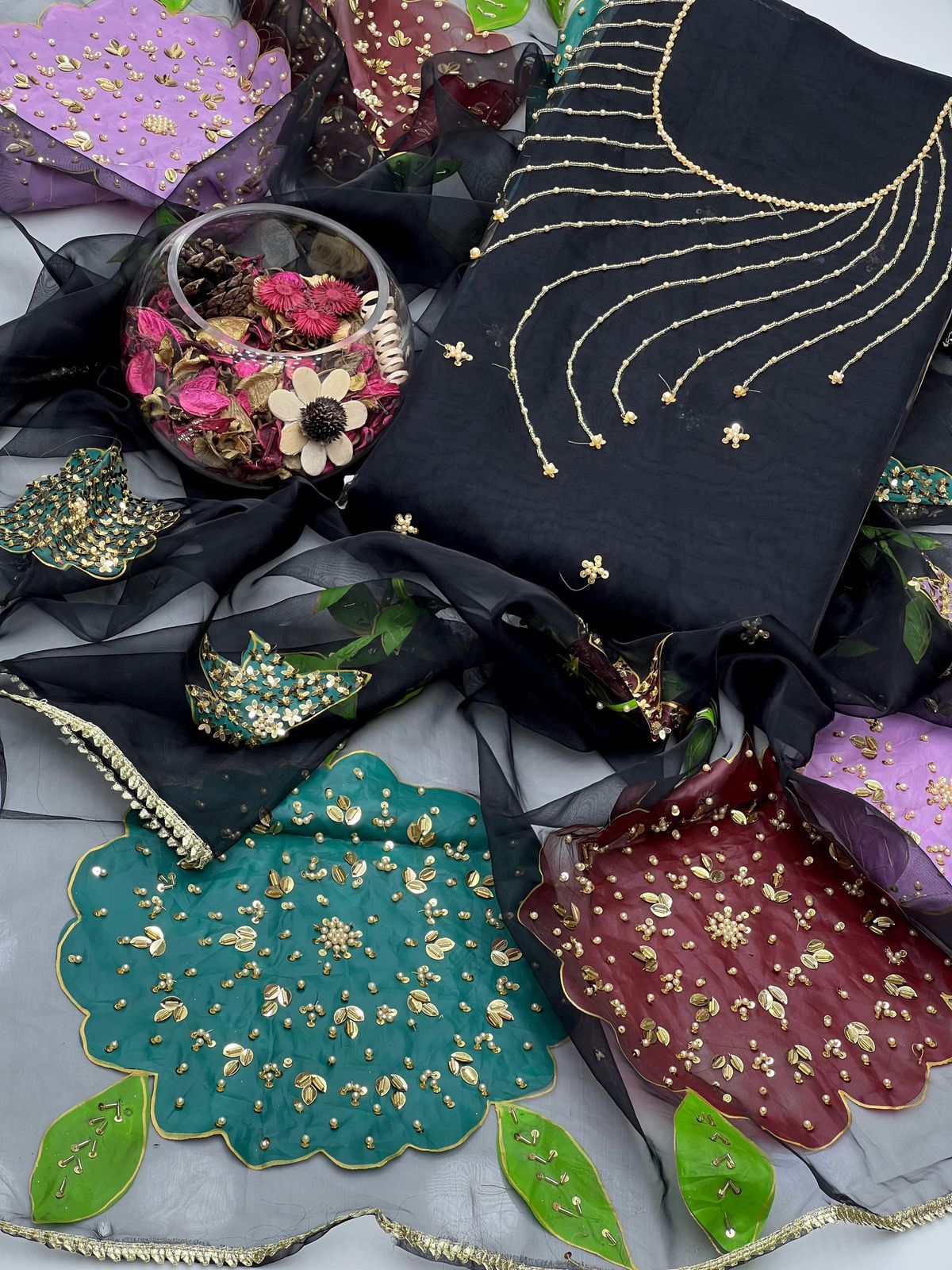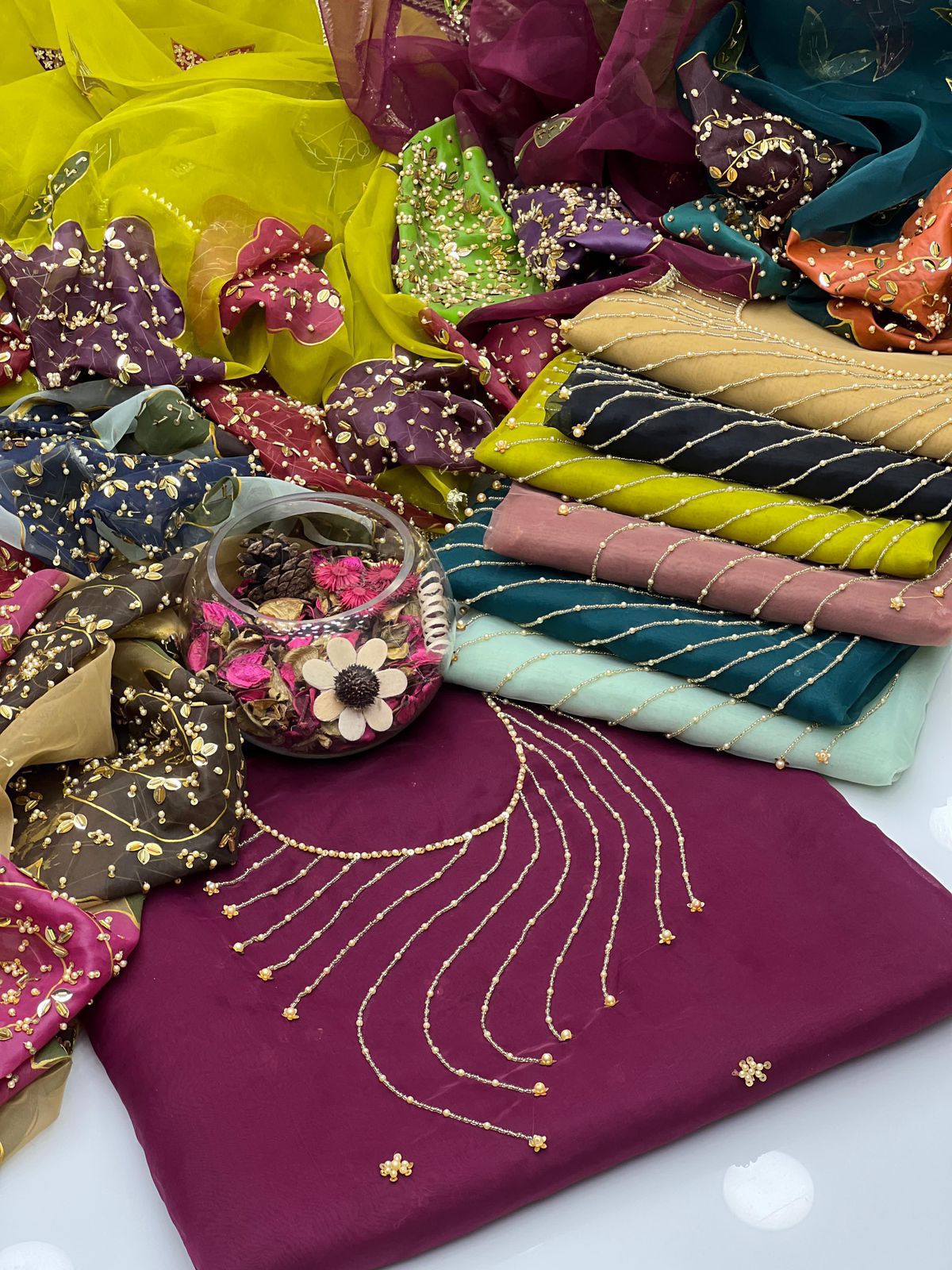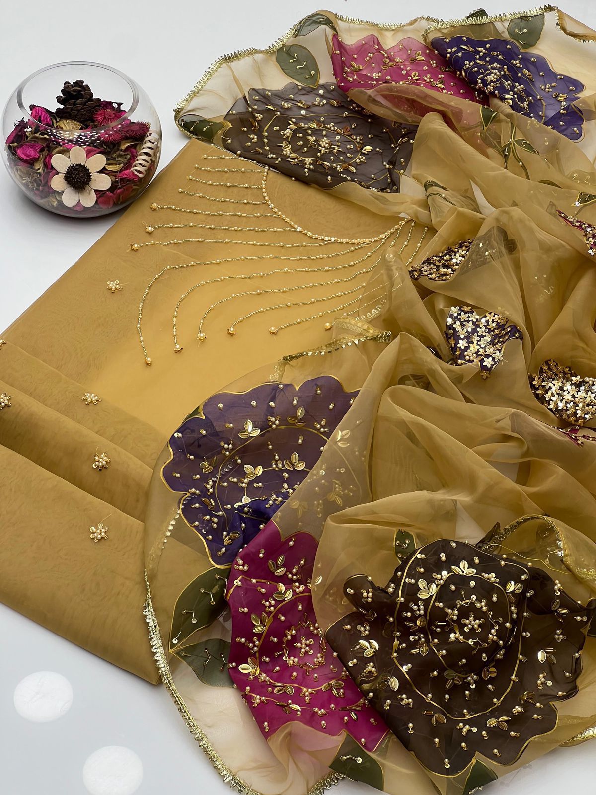 Organza Shirt With Lehria Gala Handwork Zaari Beads Work Oil Paint Organza 2 Sided Heavy Bunch Duppata 2 Pc Dress