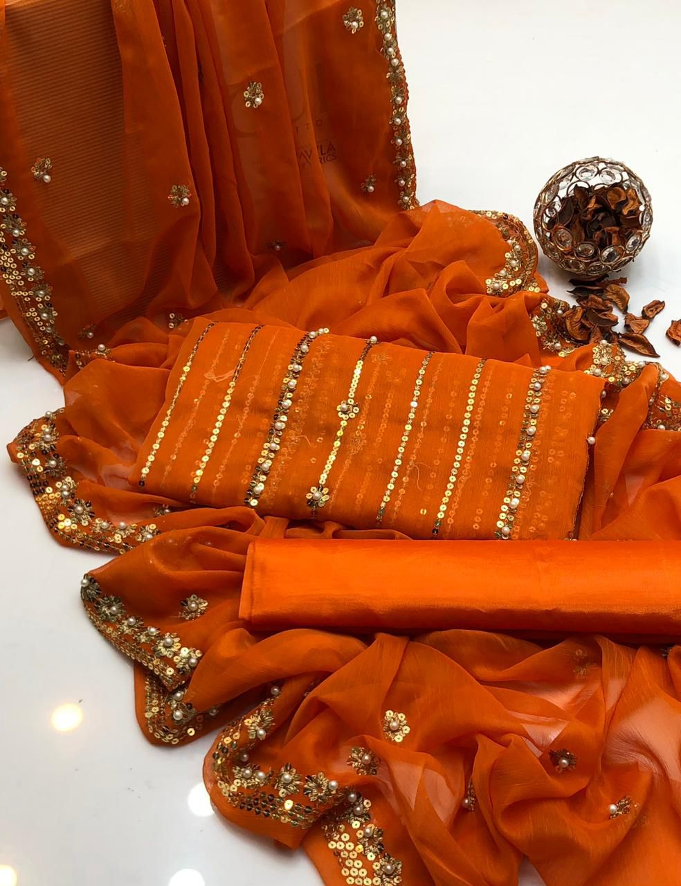 Shafon boti & pearls work duppata