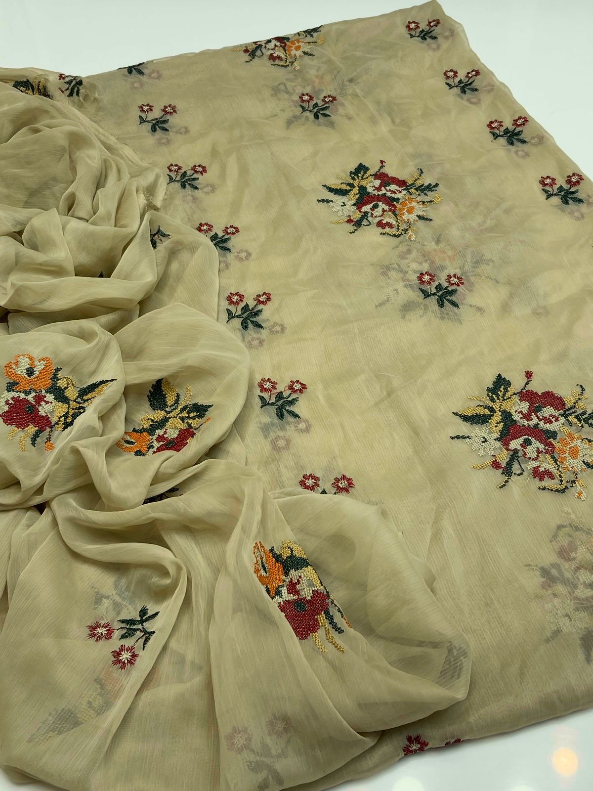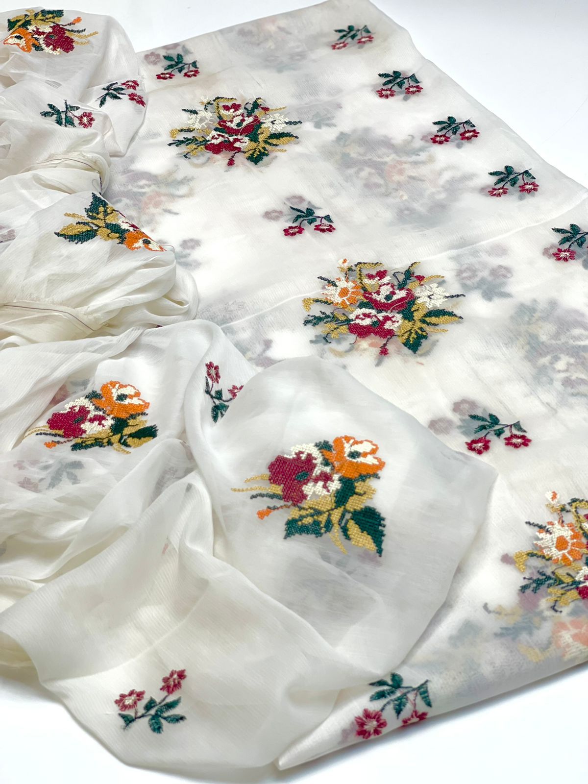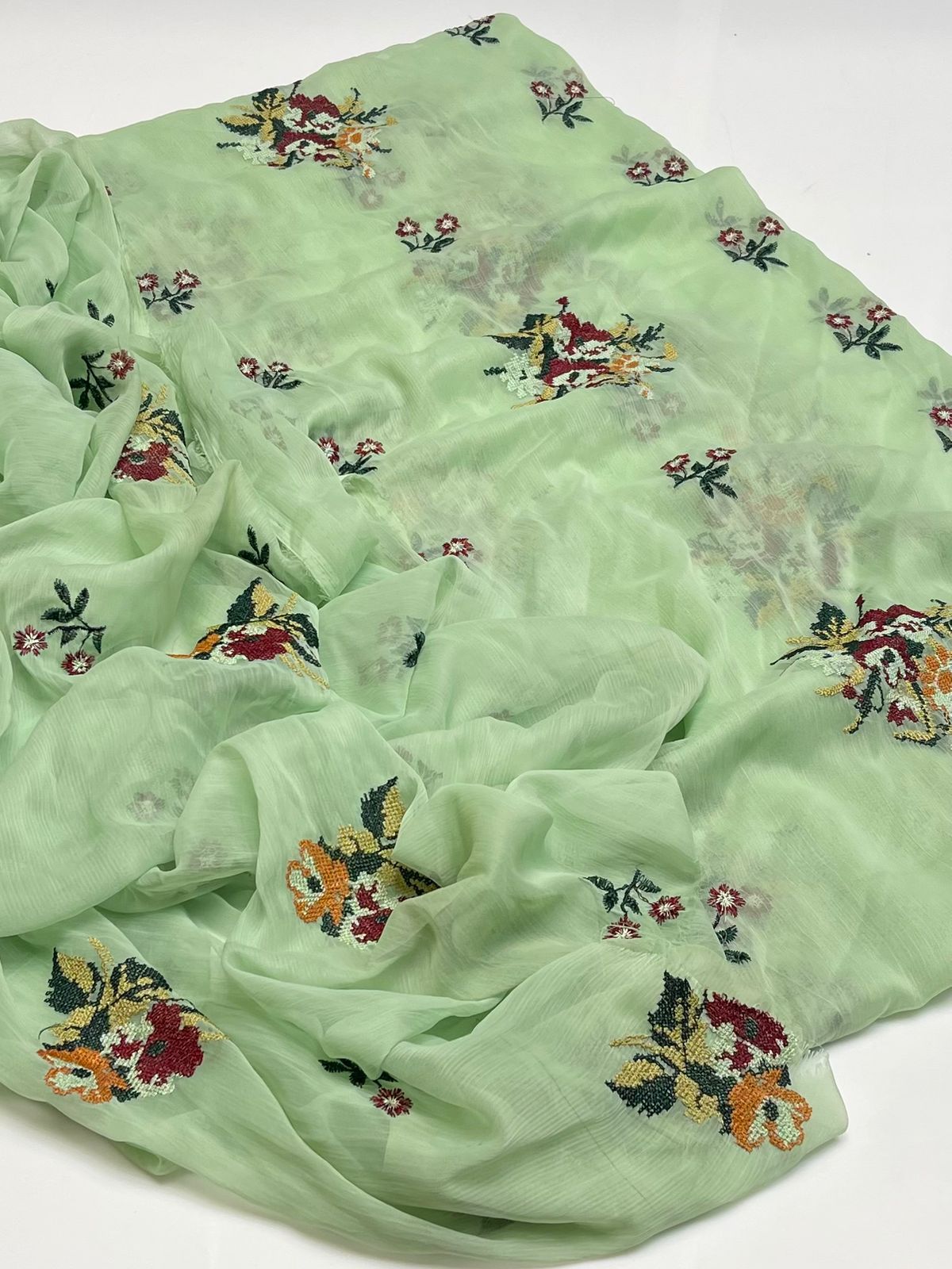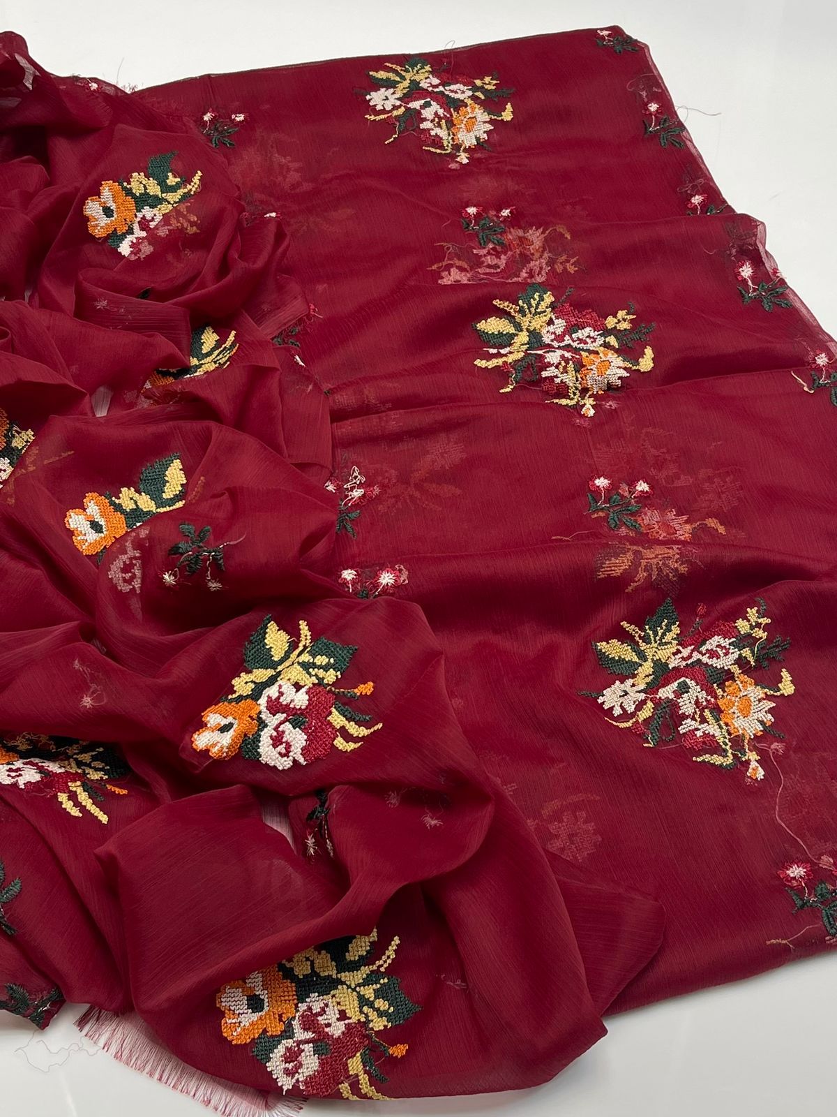 Soft Bamber Chiffon Fabric CrossStitch Embroidered