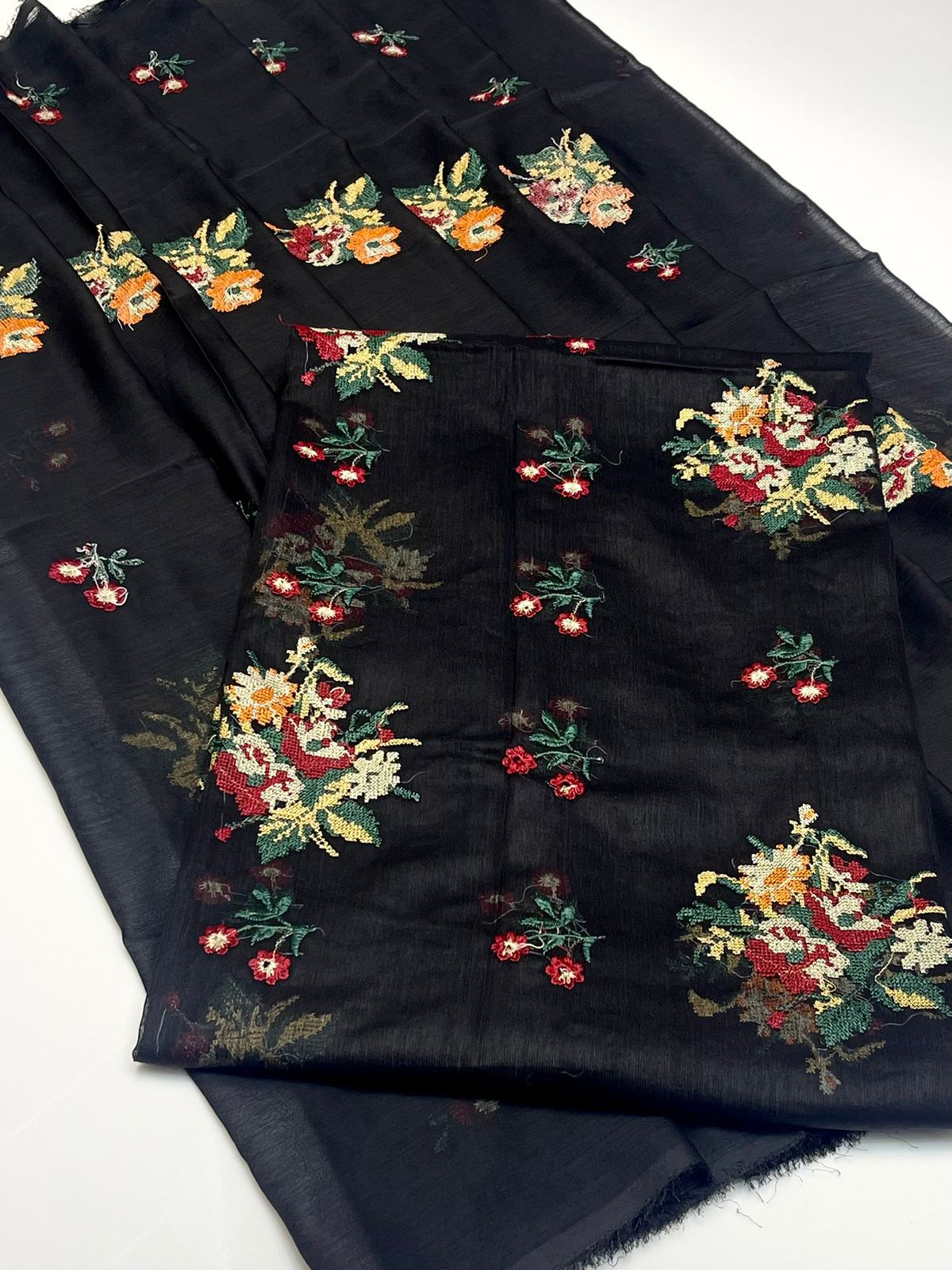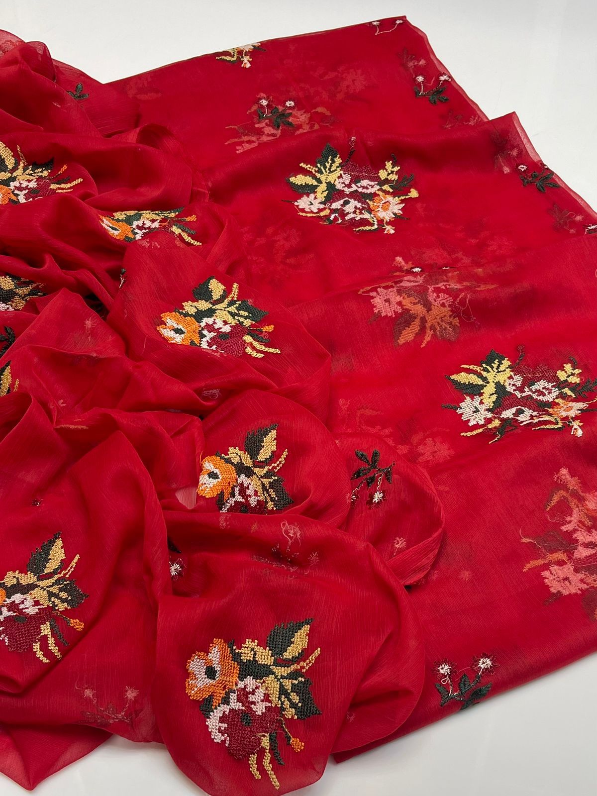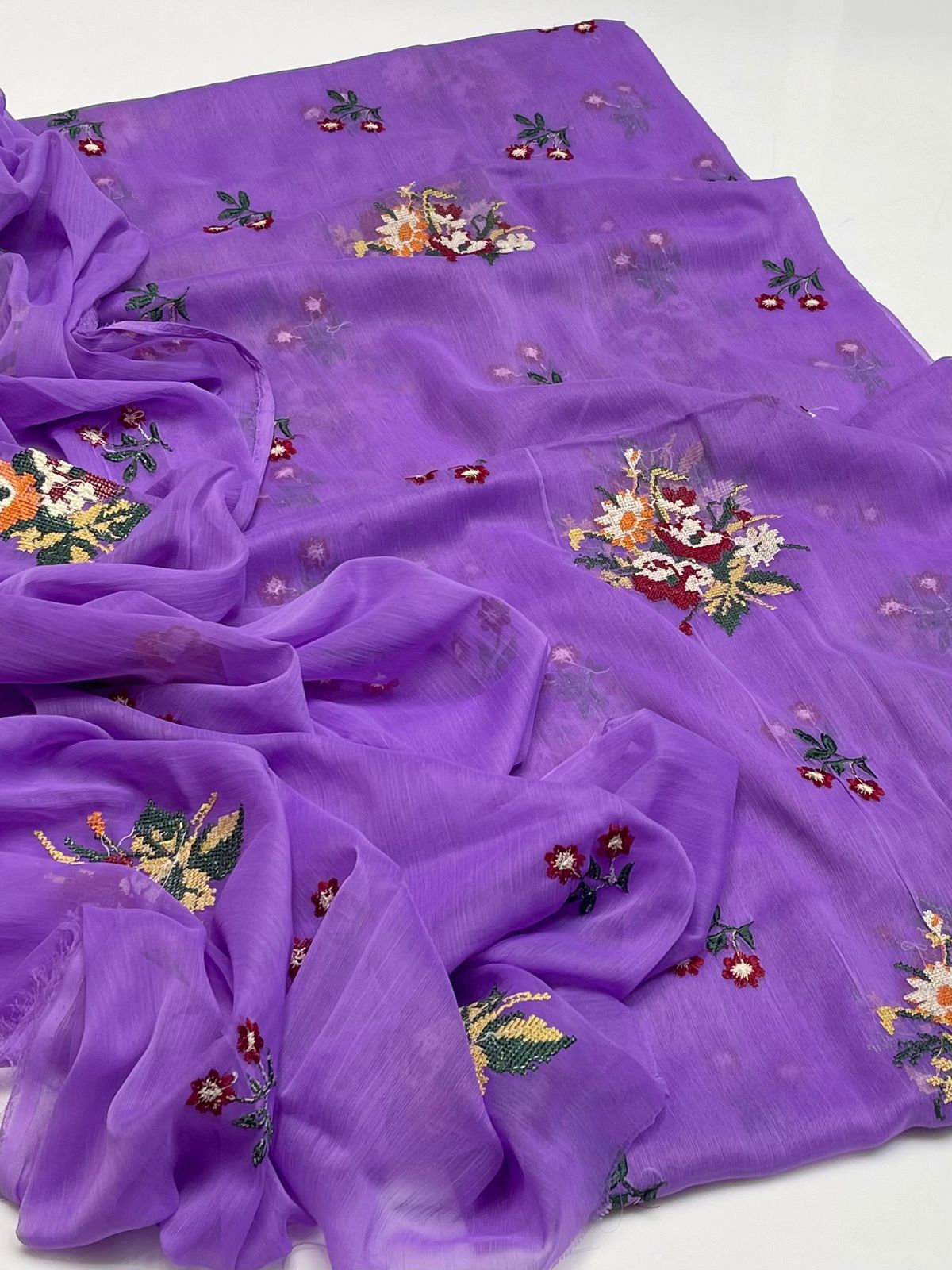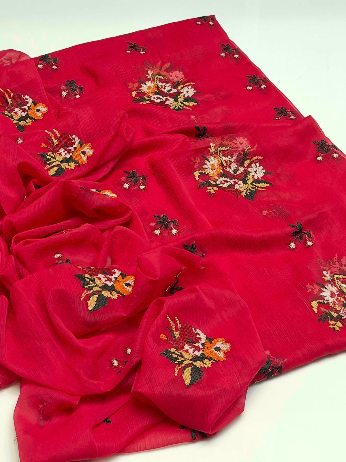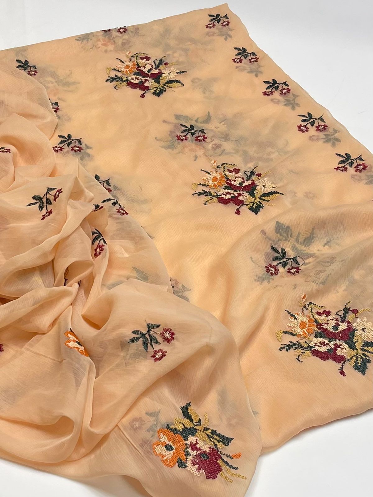 Soft Bamber Chiffon Fabric CrossStitch Embroidered