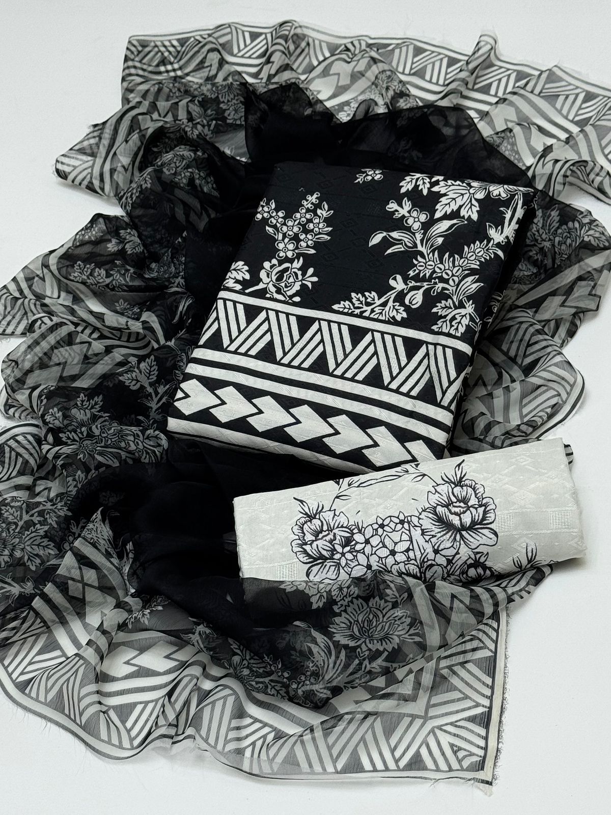 Swiss Lacquard Lawn Fabric Digital Printed 3PC Dress